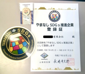 弊社のSDGs取得支援サービスにより、ご契約者様が、『やまなしSDGs推進企業』として登録されました。